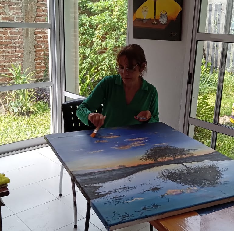 Encuentra mi estudio en un espacio donde la calma y la creatividad se entrelazan, reflejando la esencia de mis obras y mi proceso artístico.